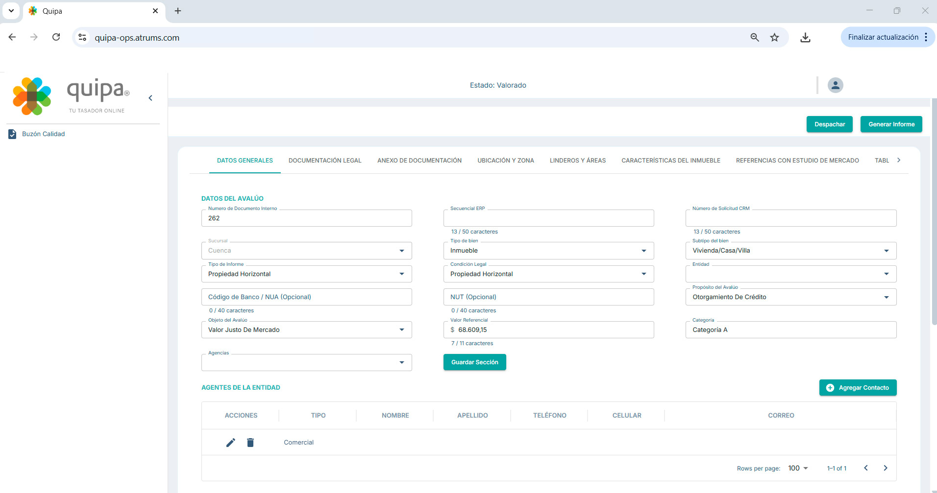 Porque centraliza todo el proceso de valoración en un solo lugar. Con QUIPA eliminas procesos y retrasos, reduces hasta en un 60% los tiempos operativos, aseguras trazabilidad total de la información y cumples con la normativa bancaria y regulatoria.